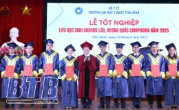 Sáng ngày 25/6, Trường Đại học Y Dược Thái Bình tổ chức lễ tốt nghiệp năm học 2024 – 2025, trao bằng tốt nghiệp cho 47 lưu học sinh Lào và Campuchia.