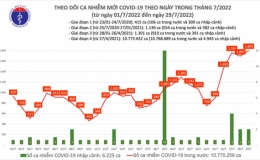 Theo Bản tin Bộ Y tế về tình hình chống dịch COVID-19, ngày 30/7, ghi nhận 1.668 ca mắc COVID-19 mới; có 7.974 bệnh nhân được công bố khỏi bệnh.