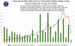 Bản tin dịch Covid-19 sáng 27/7 của Bộ Y tế cho biết có 2.764 ca mắc; gần 4,75 triệu liều vaccine COVID-19 đã được tiêm chủng.