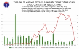Bản tin 18h ngày 21/5 của Bộ Y tế cho biết: Phát hiện thêm 58 ca mắc Covid-19, trong đó, 57 ca lây nhiễm trong nước, 1 ca cách ly sau khi nhập cảnh.