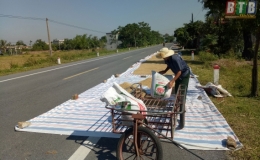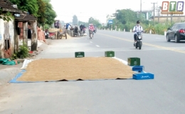 Đông Hưng: Phơi thóc dưới lòng đường gây mất an toàn giao thông