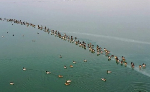 Hàng nghìn con chim di cư đậu trên mặt hồ chứa nước