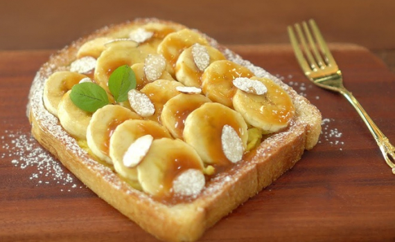 Sự kết hợp của sandwich, trứng cùng chuối chín và sốt caramel mang lại cho bạn bữa sáng nhanh gọn, hấp dẫn.