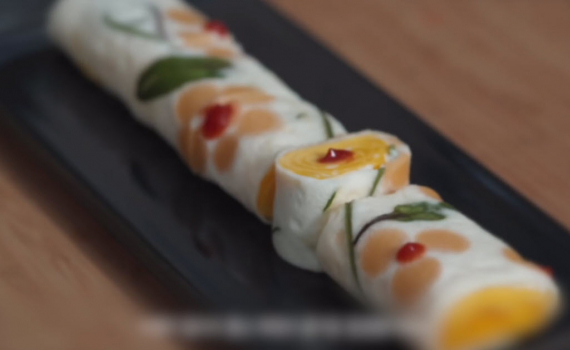 Tạo hình hoa cho món trứng cuộn
