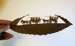 Chỉ dùng dao thủ công và kim, Omid Asadi - một nghệ sĩ tài năng người Iran đã có thể sáng tạo ra các tác phẩm tuyệt đẹp, tỉ mẩn đến từng chi tiết trên lá...