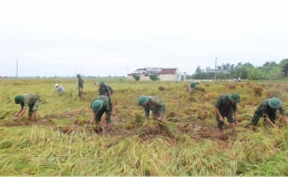 Hơn 500 cán bộ Trung đoàn 8, Quân khu 3 gặt lúa giúp dân
