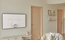 Toàn bộ nội thất căn hộ đều mang tone pastel chủ đạo, dựa trên ý tưởng về màu của ánh nắng, lá cây khô mùa thu.