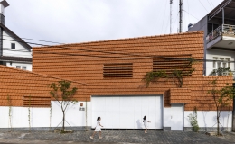 Thiết kế mái ngói dốc xếp lớp như hàng ghế sân vận động, ở giữa là giếng trời, giúp ngôi nhà thích nghi được với thời tiết mưa nhiều.