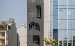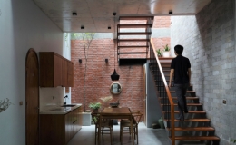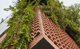 Ngôi nhà do kiến trúc sư Phạm Thanh Truyền cùng cộng sự thiết kế có mặt tiền khá lạ với gạch mộc đỏ xếp chồng, tạo ra những lỗ thoáng hút gió, đồng thời...