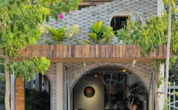 Căn nhà ở TP Phan Thiết được xây dựng theo nguyên tắc hạn chế vách ngăn, sử dụng vật liệu tái chế, dành mái để làm sân vườn gần gũi với thiên nhiên.