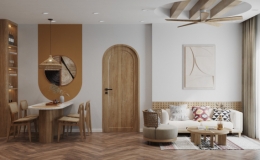 Căn hộ 70m2 được nhóm thiết kế phủ lên mình phong cách Wabi Sabi đầy tĩnh tại và bình yên, gợi nhớ đến những gì mộc mạc, chân chất nhất.