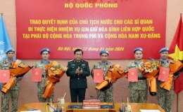 Ngày 12/1, tại Hà Nội, Bộ Quốc phòng tổ chức Lễ công bố và trao Quyết định của Chủ tịch nước cho các sĩ quan đi thực hiện nhiệm vụ gìn giữ hòa bình Liên...