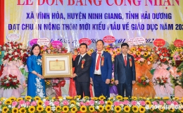 Xã Vĩnh Hoà, huyện Ninh Giang (Hải Dương) vừa tổ chức lễ đón bằng công nhận đạt chuẩn nông thôn mới kiểu mẫu về giáo dục.