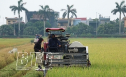 Vũ Thư: Khẩn trương thu hoạch lúa, hoa màu đề phòng mưa to, gió lớn gây thiệt hại