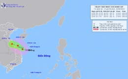 Sáng nay (26/9),áp thấp nhiệt đới đã suy yếu thành một vùng áp thấp trên khu vực Nam Lào.