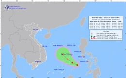 Áp thấp nhiệt đới đã vượt eo biển Philippines đi vào Biển Đông, đang di chuyển chậm với tốc độ 5-10 km/giờ, có sức gió mạnh nhất vùng gần tâm mạnh cấp 6 (39-49 km/giờ), giật cấp 8