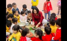 Trường Mầm non Vũ Chính: Ngày hội bé vui trải nghiệm gói bánh chưng xanh xuân 2023