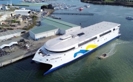 Hãng đóng tàu Incat hạ thủy tàu hai thân Hull 096 tại thành phố Hobart, bang Tasmania, hôm 2/5, đánh dấu bước tiến lớn trong vận tải bền vững.