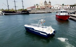 Chiếc thuyền nhôm không người lái chạy bằng điện mặt trời, dài 8,7m và rộng 2,4m do công ty Atomo Tech và doanh nghiệp Hải quân Colombia COTECMAR hợp tác...
