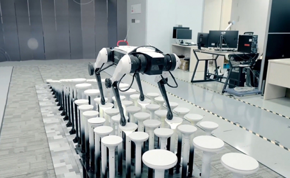 Robot Max của công ty Tencent gây kinh ngạc với khả năng đi lại và nhảy trên các cột có độ cao và kích thước khác nhau.