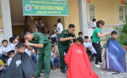 Thực hiện kế hoạch của Bộ Chỉ huy BĐBP tỉnh Thái Bình về việc triển khai mô hình "Tay kéo Biên phòng", chiều 03/10 tổ cắt tóc của Chi đoàn Đồn...