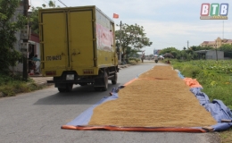 Đông Hưng: Phơi rơm, thóc trên đường gây mất an toàn giao thông