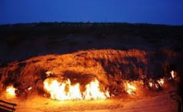 Bức tường lửa bao quanh núi Yanar Dag ở Azerbaijan không bao giờ ngừng cháy, ngay cả mưa lớn, tuyết rơi, hoặc gió mạnh cũng không thể dập tắt.