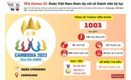 Có 1.003 thành viên đoàn Việt Nam tham gia SEA Games 32, trong đó có 700 vận động viên, 10 chuyên gia, 190 huấn luyện viên và 64 bác sỹ cùng cán bộ.