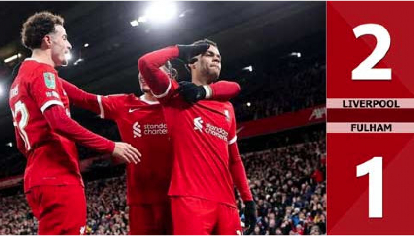 Liverpool đã có màn ngược dòng để đánh bại Fulham 2-1 ngay tại Anfield trong trận bán kết lượt đi Cúp Liên đoàn Anh 2023/24. Kết quả này giúp Liverpool nắm lợi thế trước khi hành quân đến London làm khách của Fulham ở trận bán kết lượt về diễn ra vào ngày 25/1.