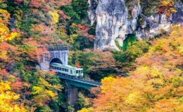 Hẻm núi Naruko Gorge (tỉnh Miyagi, Nhật Bản) thu hút du khách ghé thăm những ngày thu sang để ngắm cảnh lá thay màu.