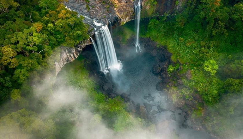 Thác K50 cao 54m nằm sâu giữa núi rừng thuộc Khu Bảo tồn Kon Chư Răng (Gia La và Bình Định) mang vẻ thuần khiết, hoang sơ thu hút nhiều du khách.