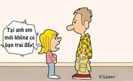 Tèo đang ngồi đọc báo thì cô con gái nhỏ đến bên cạnh bẽn lẽn hỏi:
