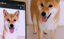 Khi người chủ cho xem những tấm hình đã chụp, chú chó nhanh chóng tạo dáng không sai một động tác nào.