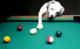 Chú chó đánh bi-a như cơ thủ chuyên nghiệp