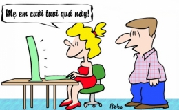Khi vợ mở máy tính ra xem ảnh cưới, nàng chỉ vào bà mẹ mình trong ảnh rồi nói với chồng: