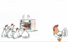 Gia đình nhà gà đang ngồi xem TV, đến phần quảng cáo gà quay thì gà mẹ bỗng tắt phụt ti vi đi.