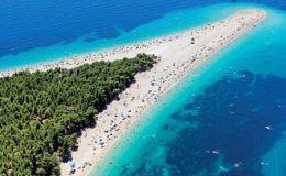Bãi biển Zlatni Rat nằm trên một mũi đất cách 2km về phía Tây bến cảng Bol, thuộc đảo Brac, Croatia.