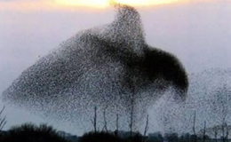 Khi cùng bay lượn trên bầu trời, đàn chim với số lượng hàng nghìn con có thể vô tình tạo thành hình vòi rồng, dấu chấm than hay mặt cười....