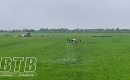 Tiền Hải: Phun trừ sâu bệnh bảo vệ lúa xuân cuối vụ