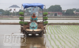Đông Hưng: Đưa máy cấy xuống đồng cấy lúa xuân