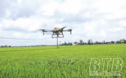 Nam Hải ứng dụng công nghệ máy bay phòng trừ sâu bệnh bảo vệ lúa xuân