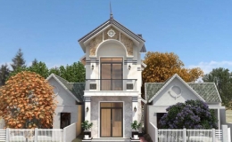 Mẫu nhà ống 2 tầng mái Thái mặt tiền 5m đẹp như mơ