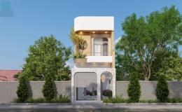 Ngôi nhà 2 tầng sử dụng không gian mở, cho gia chủ tương tác dễ dàng với thiên nhiên. Màu xanh mát dịu làm không gian tràn ngập sức sống.