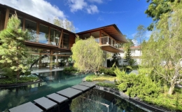 Bao quanh ngôi nhà là khoảng sân đầy nước, một chiếc cầu nhỏ và thảm thực vật phong phú khiến ngôi nhà như nằm trên một hòn đảo xanh mướt.