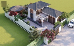 Nhà mái ngói siêu đẹp lấy cảm hứng từ nhà 5 gian
