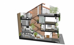 Trước khi cải tạo, ngôi nhà chỉ có một khe hở ở ven đường nên khá tối và bí bách. Nhưng các KTS đã bố trí các tầng lùi dần vào trong, trồng thêm cây xanh...