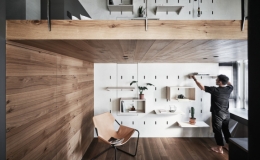 Những giải pháp lưu trữ thông minh như giá sách chạm trần, tủ chạy dọc nhà hoặc tường đục lỗ tạo nên không gian nội thất gọn gàng, hợp lý.