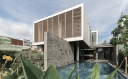 Ngôi nhà nổi bật giữa phố bởi tấm lưới lạ mắt phủ mặt tiền