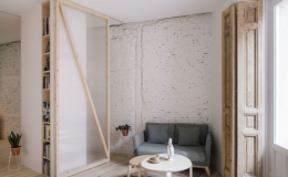 Ngôi nhà 45m2 vẫn đáp ứng đủ nhu cầu về không gian sinh hoạt nhờ cách bố trí vách ngăn đa chức năng một cách linh động.