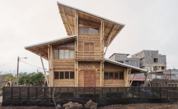 Mái hiên lớn cùng các khung gỗ chống đỡ có tác dụng tăng khả năng chịu lực và chống động đất cho ngôi nhà.